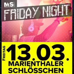 FRIDAY NIGHT – DJ Dancefloor – Mixes von DJW1 Mit guter Musik und Tanzen fühlen wir uns einfach wohl. Vorverkauf: 5€ www.mts-events.de im Marienthaler Schlösschen Altensteiner Str. 130 | 36448 Bad Liebenstein